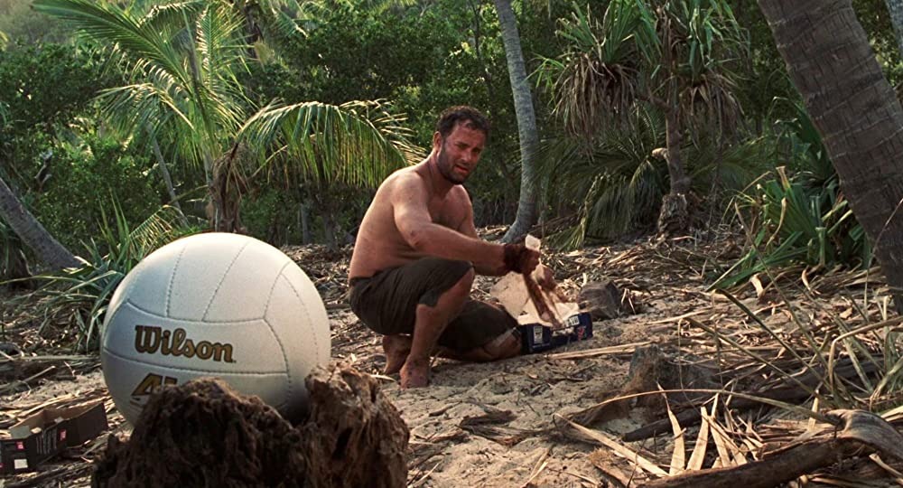無人島でのサバイバル生活や話し相手のウィルソン(バレーボール)との関係。